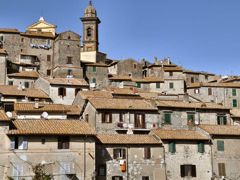 Il borgo sorge su un alto rilievo, che pare emergere dalle acque del lago vulcanico, e dal centro si domina uno splendido panorama che spazia dal lago fino agli Appennini.